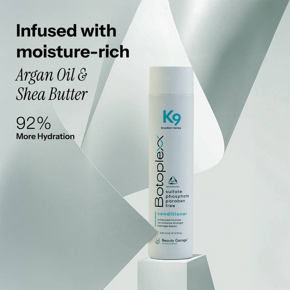 Bring your hair back to life with the K9 Botoplexx Conditioner from Beauty Garage – a rich, restorative formula designed to deeply hydrate, strengthen, and shield your strands from everyday damage. Perfect for dry, frizzy, or damaged hair, this conditioner improves manageability, tames frizz, and prevents split ends and breakage. Infused with smoothing silicones and moisture-locking actives, it transforms dull, brittle hair into soft, shiny, and healthy-looking locks.